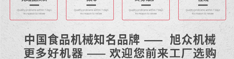 廣州旭眾食品機(jī)械有限公司是一家集科研開(kāi)發(fā),生產(chǎn)設(shè)計(jì),營(yíng)銷服務(wù)為一體的現(xiàn)代化生產(chǎn)企業(yè)?,F(xiàn)代化生產(chǎn)車間,精湛制造技術(shù),所產(chǎn)機(jī)械歷經(jīng)市場(chǎng)重重考驗(yàn),不斷贏得海內(nèi)外客戶的贊譽(yù)。