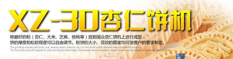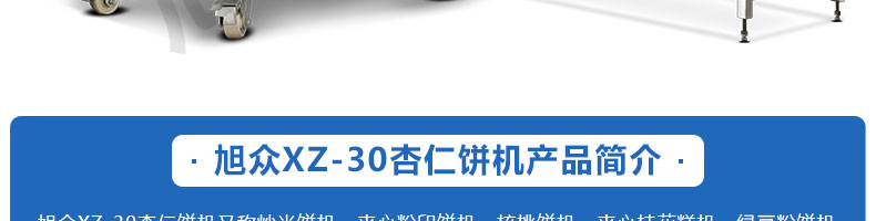 XZ-30杏仁餅機,該機用于制作杏仁餅、炒米餅成型、炒米餅成形、夾心粉餅,綠豆餅。