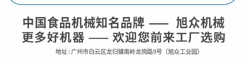 廣州旭眾食品機(jī)械有限公司是一家集科研開(kāi)發(fā),生產(chǎn)設(shè)計(jì),營(yíng)銷(xiāo)服務(wù)為一體的現(xiàn)代化生產(chǎn)企業(yè)?,F(xiàn)代化生產(chǎn)車(chē)間,精湛制造技術(shù),所產(chǎn)機(jī)械歷經(jīng)市場(chǎng)重重考驗(yàn),不斷贏得海內(nèi)外客戶的贊譽(yù)。