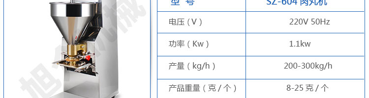 SZ-604肉丸成型機,肉丸成型機采用不銹鋼材質(zhì),丸子直徑可達15-35mm,可以制作各類爽脆,有韌性、有彈性的豬肉丸、魚丸、牛肉丸、貢丸、雞肉丸等
