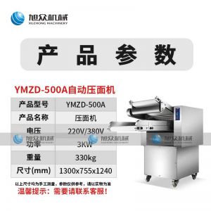 名稱500A壓面機(jī)主圖 電源220/380v 功率3kw 產(chǎn)量 尺寸1300*755*1240mm 重量330kg 規(guī)格 其他
