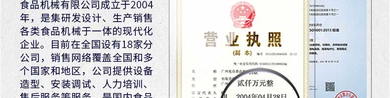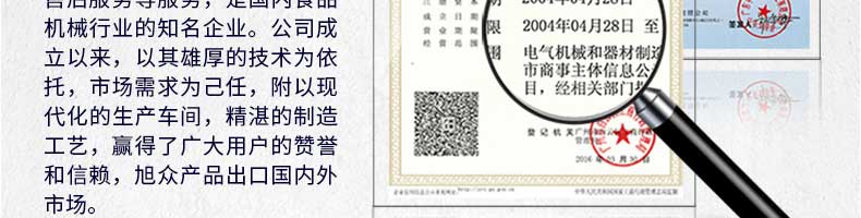 廣州旭眾食品機(jī)械有限公司是一家集科研開發(fā),生產(chǎn)設(shè)計(jì),營(yíng)銷服務(wù)為一體的現(xiàn)代化生產(chǎn)企業(yè)?,F(xiàn)代化生產(chǎn)車間,精湛制造技術(shù),所產(chǎn)機(jī)械歷經(jīng)市場(chǎng)重重考驗(yàn),不斷贏得海內(nèi)外客戶的贊譽(yù)。